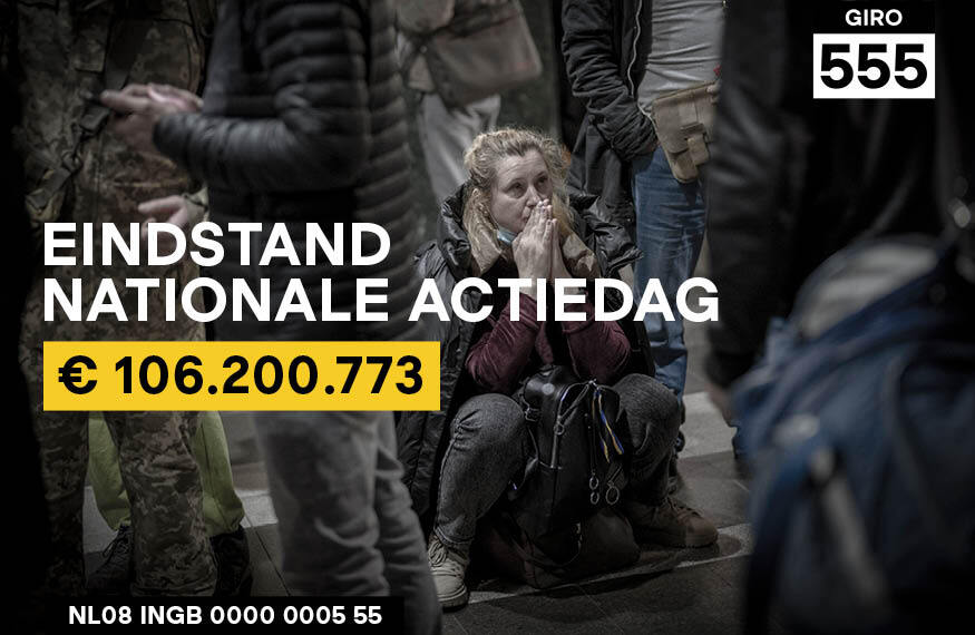 De voorlopige eindstand van de actiedag van Giro555 bedraagt rond 2215 uur bijna 89 miljoen euro. Samen in actie voor noodhulp Bij uitzonderlijke humanitaire rampen slaan de 11 samenwerkende hulporganisaties de handen ineen. Bijna 89 miljoen euro.